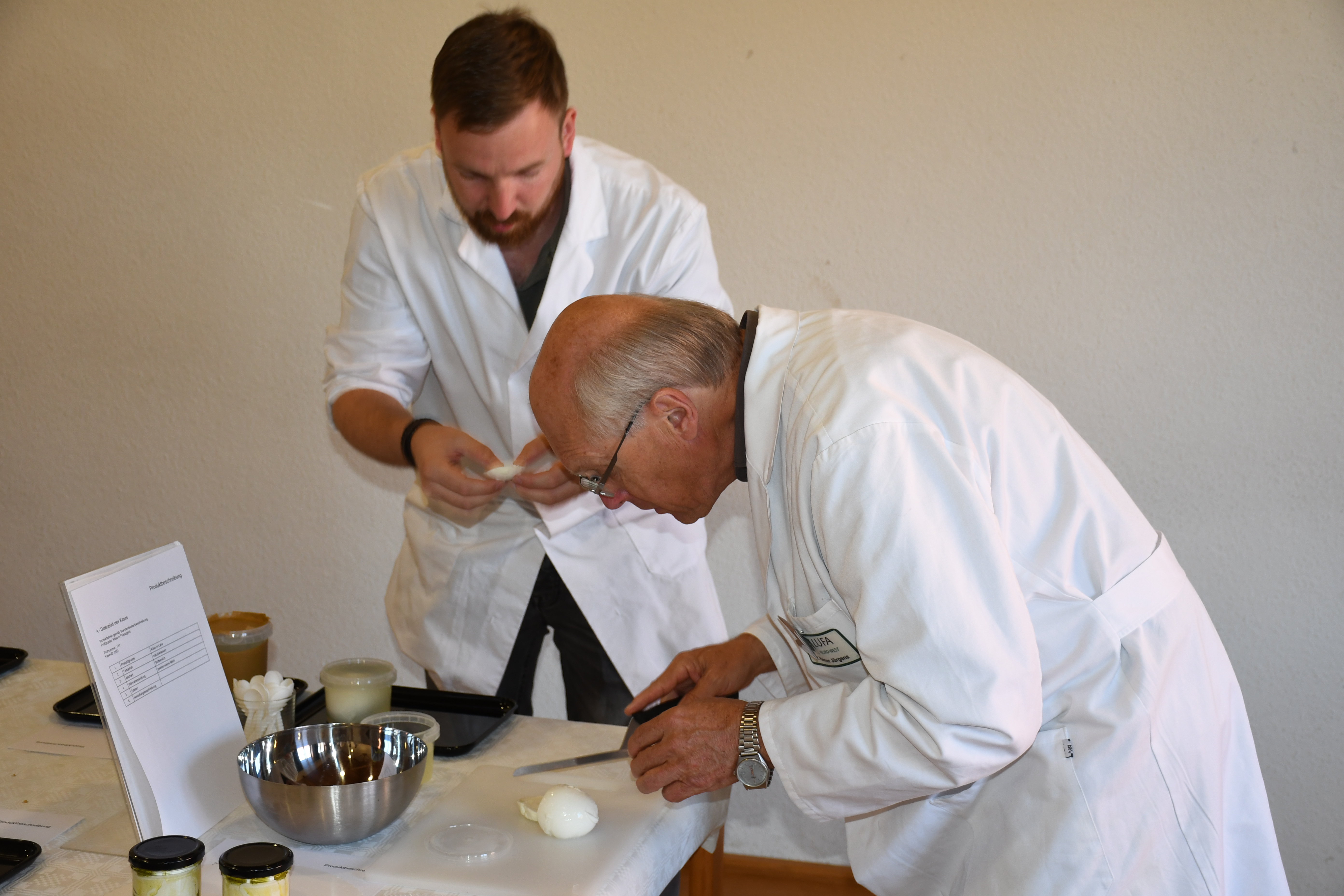 Beschreibung: Die Milch- und Käseprodukte werden in der Qualitätsprüfung on einer Fachjury genau untersucht. Copyright: © VHM |
